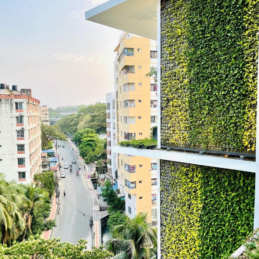 এর মাঝে বলে নিই যে ঢাকায় আমাদের র্যাংগস প্রোপার্টিস প্রথমে প্রজেক্টের সীমানা প্রাচিরে ভার্টিকাল ফেন্স তৈরী করে ব্যতিক্রমী দৃষ্টান্ত স্থাপন করে । কিন্তু ৫/৬ ফিট উচু সীমানা প্রাচীরে ভার্টকাল গ্রিন করা আর একটি ভবনের এক্সটেরিয়র ওয়ালে আগাগোড়া ন্যাচারাল গ্রিণ দিয়ে মুড়িয়ে দেয়া এক কথা না । এটা ভীষণ চ্যালেঞ্জিং । আমি আর আদিব ভাই ২০১৮ সালের নভেম্বরে সাংহাই গেলাম একটা বিজনেস কনফারেন্স এ । সেখানে গিয়ে এই ভার্টিকাল গ্রিণ নিয়ে অনেক ভবন খুজলাম । কিন্তু শতভাগ ভার্টিকাল গ্রিণ বিল্ডিং খুজে পেলাম না । তবে এই খুজাখুজিতে একটা লাভ হলো । আমরা যে ৫০ টির মতো বিল্ডিং ঘুরে দেখলাম সেখানে বেশ কিছু ভবনে ১০ ফিট উচু ভার্টিকাল গ্রিণ পেলাম । সেইগুলো তৈরীর পদ্ধতি বোঝার চেষ্টা করলাম । কয়েক ধরনের পদ্ধতি সেখানে দেখলাম ।