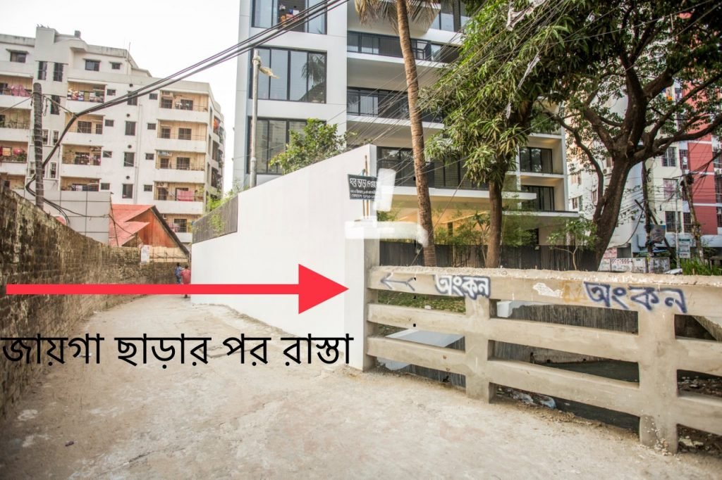ও হ্যাঁ, আরেকটা বিষয় বলে নিই । প্রকল্পের নির্মাণ যখন শেষ পর্যায়ে তখন পশ্চিম পাশের সীমানা প্রাচীর নির্মাণে হাত দিই আমরা । সেই প্রাচীর ঘেষে চলে গেছে একটা বাই লেইন যার প্রস্থ মাত্র ১০ ফিট । সেই পথের শেষে চারটি বাড়ি । চারটি বাড়ি মানে ২০ টি পরিবার । সেই বাড়ি গুলোর বাসিন্দারা সরু রাস্তার জন্য গাড়ি ঢুকাতে হিমশিম খান । এরকমই অবস্থা চলছিল যুগ যুগ ধরে । কোনো বিপদে একটা এম্বুলেন্স পর্যন্ত ঢুকা দায় !