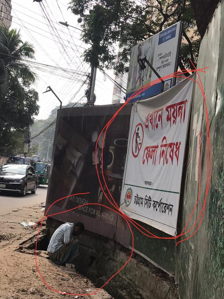 -গিয়াস ভাই, ফুটপাতের রক্ষণাবেক্ষণ আপনারা করেন । অথচ এখানে লোকজন ময়লা ফেলে । আমাদের একটু সুযোগ দেন আমরা এখানে একটা ওয়াক ওয়ে বানিয়ে দিই এবং যে বিশাল ড্রেনটা দেখা যায় রাস্তা থেকে সেটা একটা ক্যামোফ্লেজ করে দিই যাতে ড্রেনটা আর দৃষ্টিগোচর না হয় ।